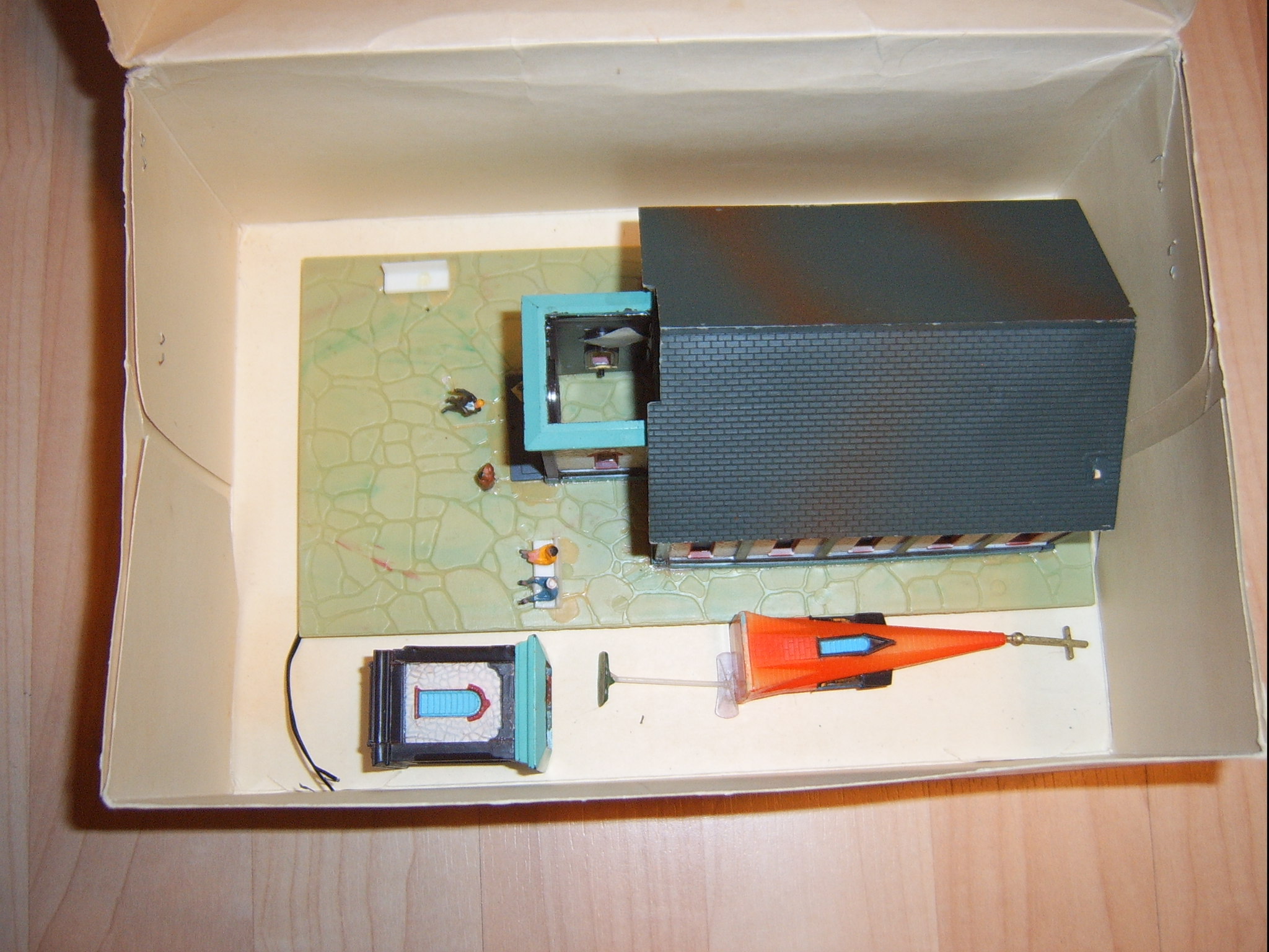 Nifty building, would look good on any layout. Open box, but all parts are there.