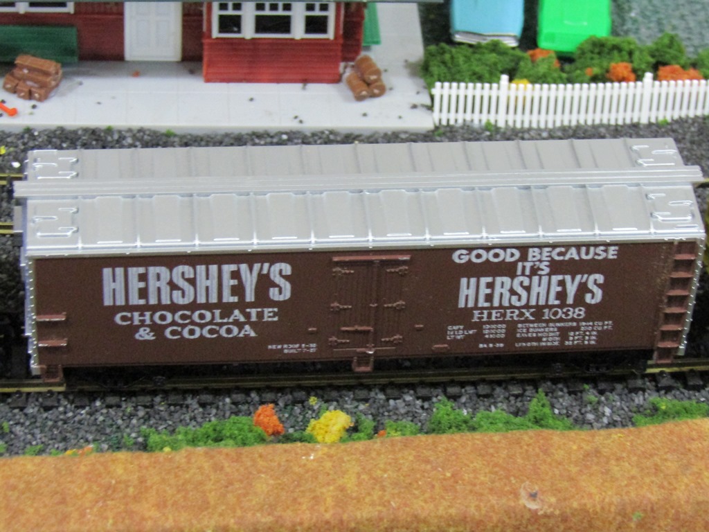 The Hershey's box car, made by Tyco, as seen on the outer track of the Ephrata Valley Railroad.