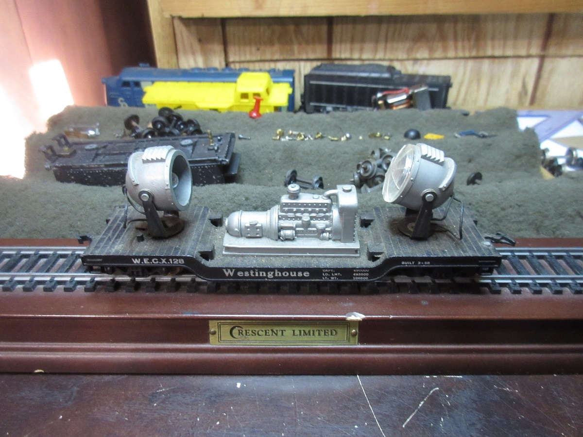 * For my car of the week a Marx generator car with two floodlights. A Westinghouse depressed center, all-metal flat car WECX 128. frank