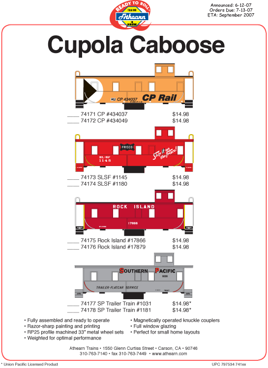 New Run- Athearn Cupola Caboose