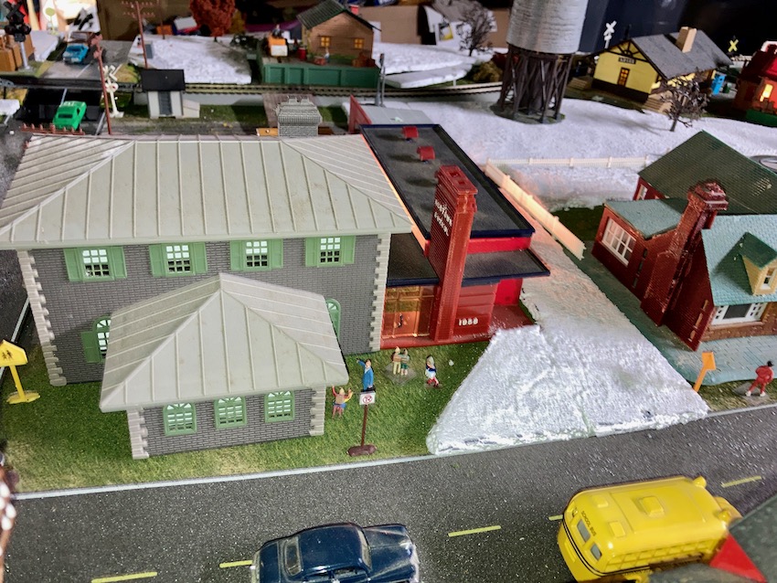 As 2021 begins, school resumes on my layout, including the high school here (complete with fighting students)…