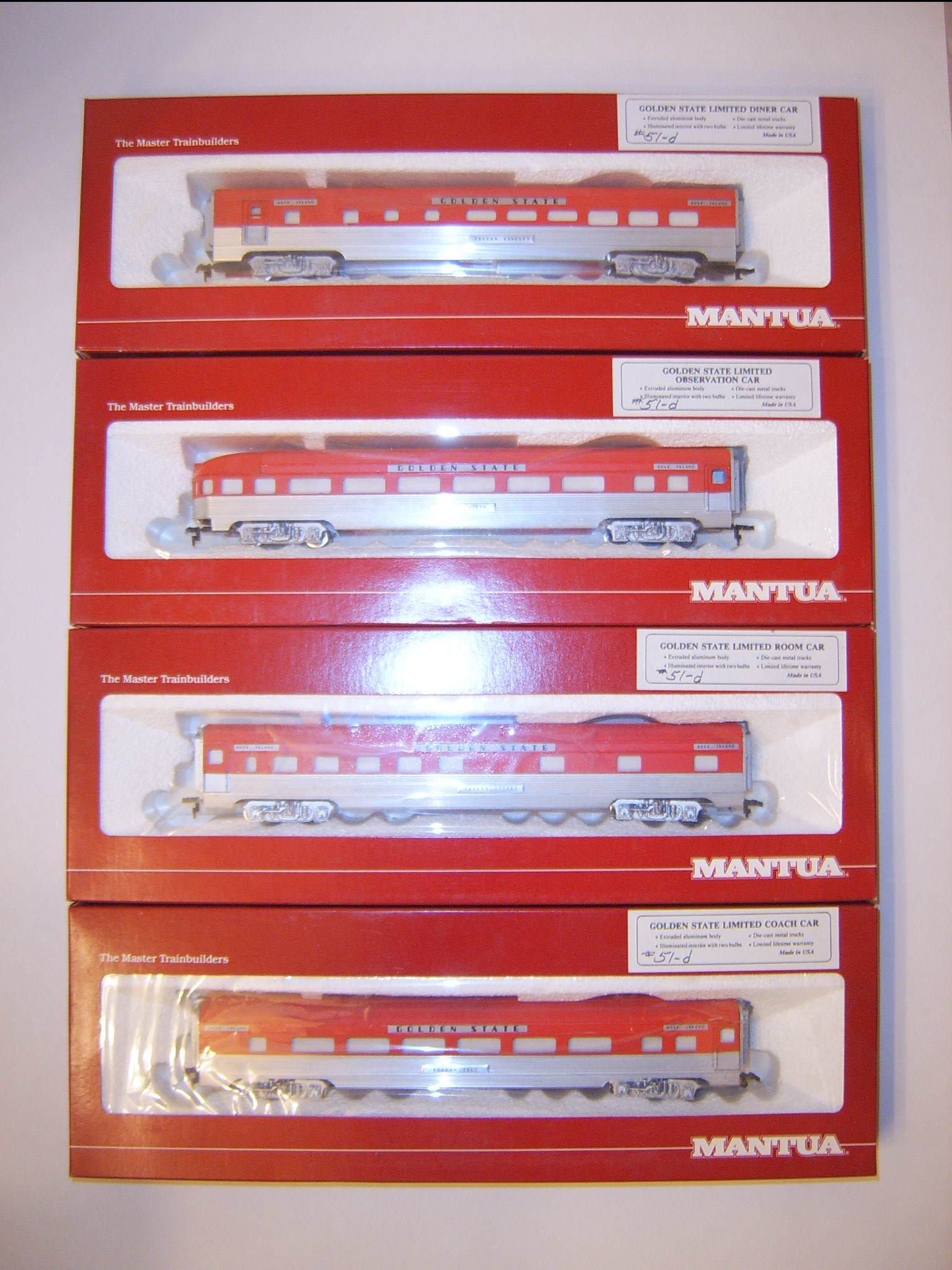 Thanks guys. My trains are in boxes on 2 different floors, thus it is sometimes hard to match things up. Here are the Golden State Rock Island passenger cars that go with the diesels.