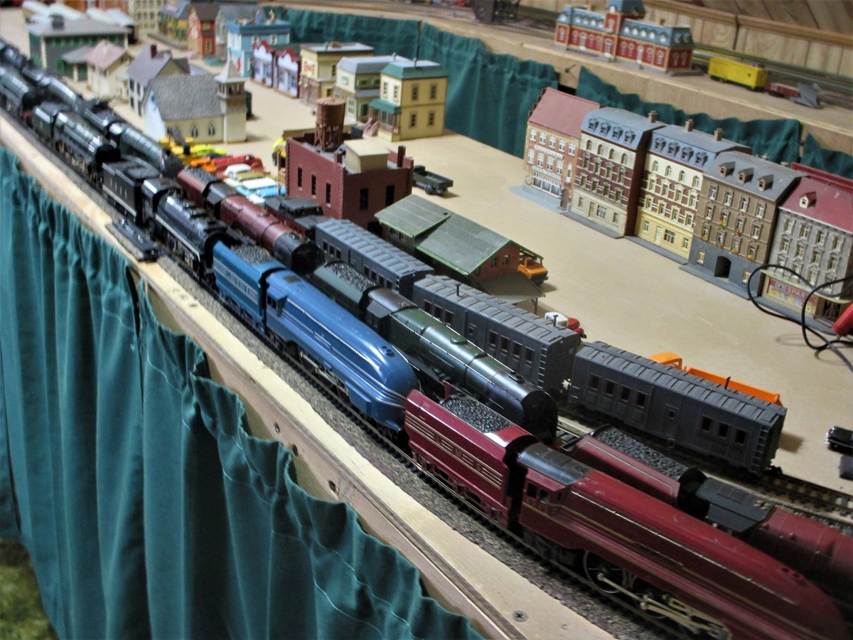 Got buried in Tyco for a while, now pulling my attention to the British OO layout, Bamberg. While helping Jimmy revise and consolidate his layout, I realized that where I was getting stuck was making the "fiddle", switching yard, much more busy than it needed to be. So I took out three turn outs, and am more pleased with this condensed version that isn't so crammed and jammed. Keep It Super Simple- the multiple diamonds already make it plenty interesting to run. This is the before shot, crammed.