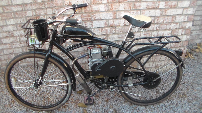 The first motorcyles, around 1903, were much like this: bicycles with one lung motors, so this little bit of repop is a lot of fun to drive and outrun loose pit bulls.