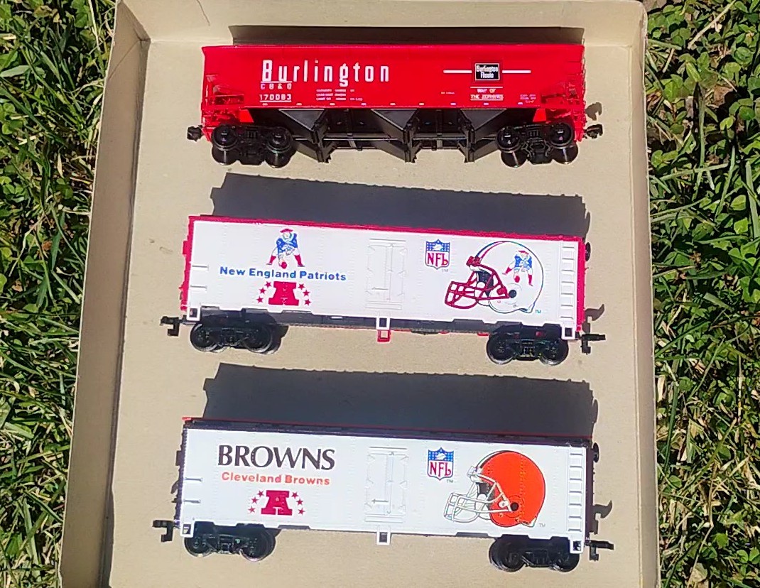 Patriots car for five dollars Browns car for five dollars Burlington car for fifteen dollars