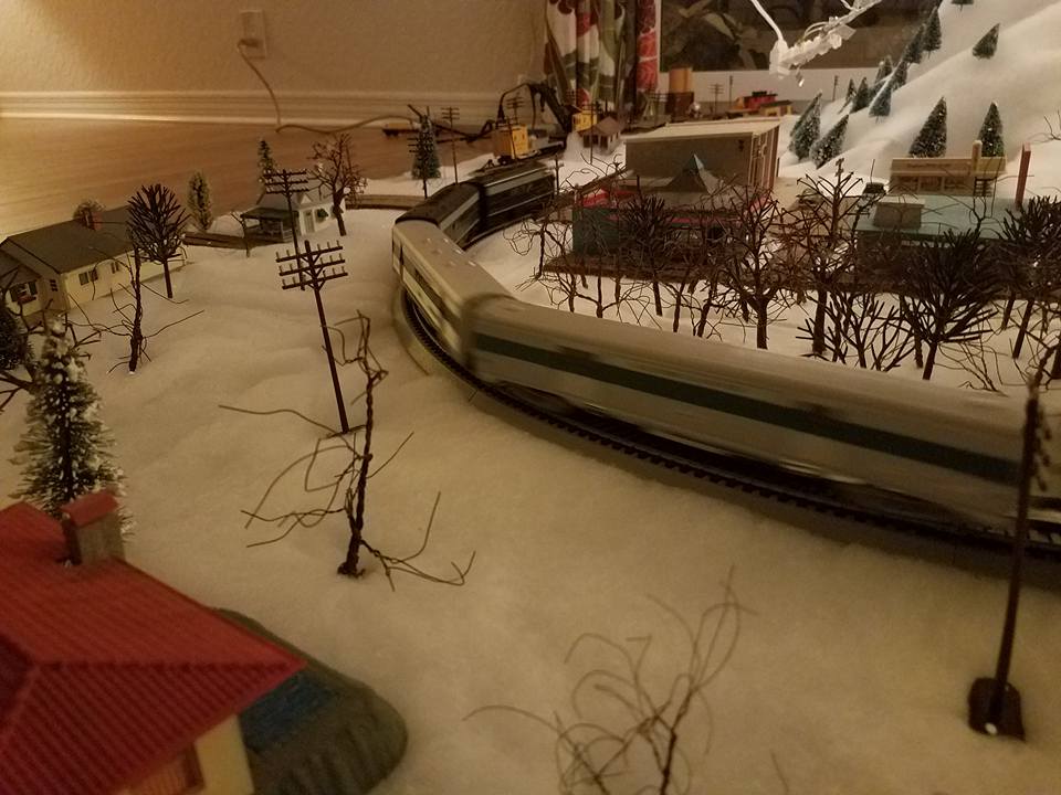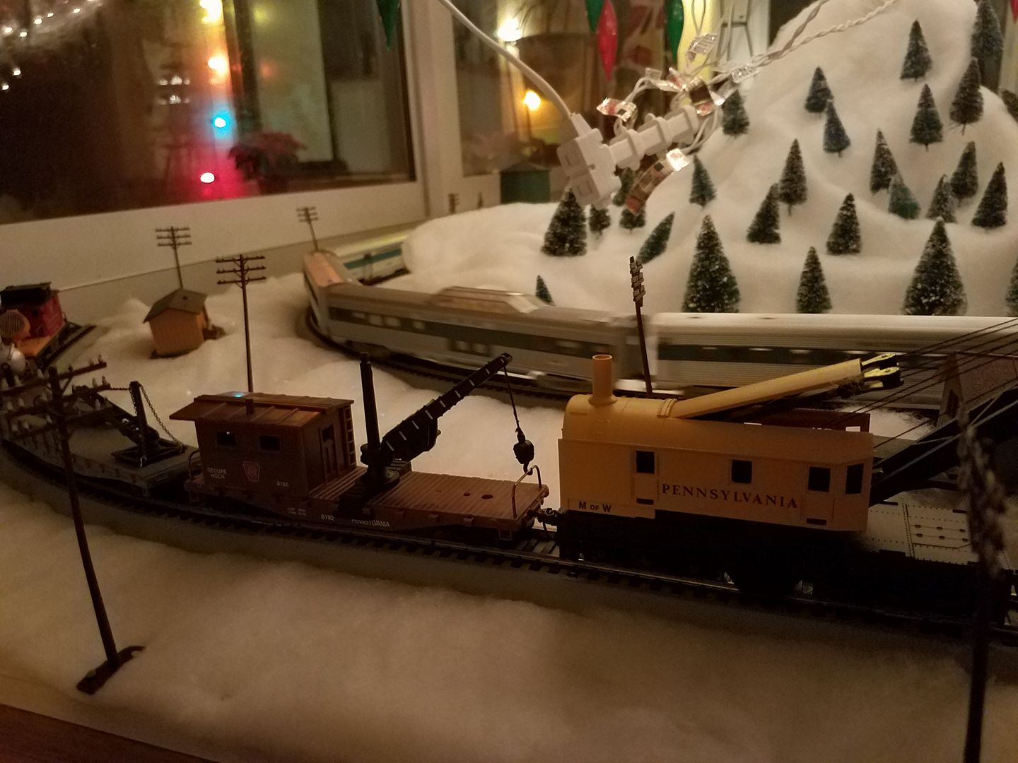 Whoa! Awesome layout!! I love the snow detailing, and that house is stellar!!!! My favorite pieces of rolling stock/locomotives operating on your layout include that Pennsy wreck crane & maintenance car, and, are those Tyco B&O F9's, A&B?!?!?