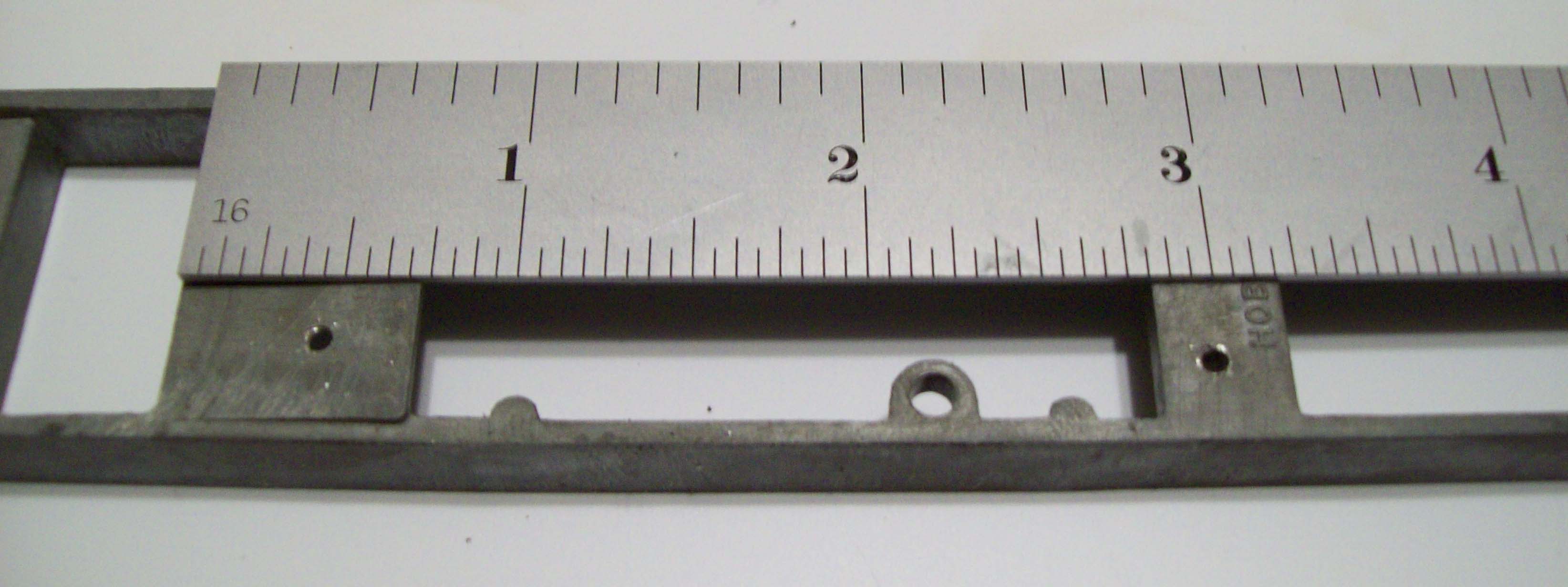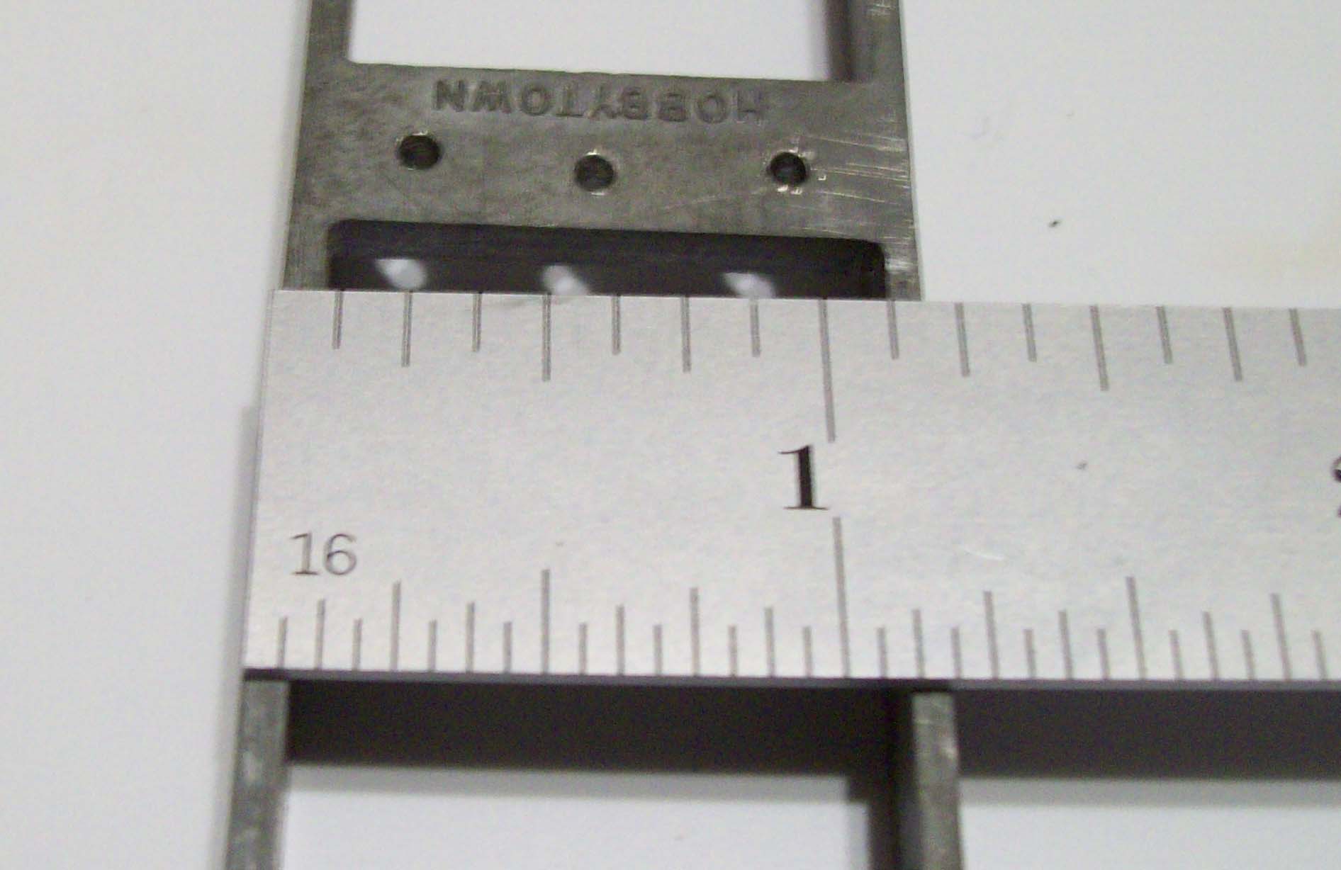 The piece needs to fit the mount that Athearn made on the bottom of the motor. This mount has the screw holes that will hold it to the new mount. I measured from the outside of the Athearn mount (see photo above). Then I marked it for the screw holes.