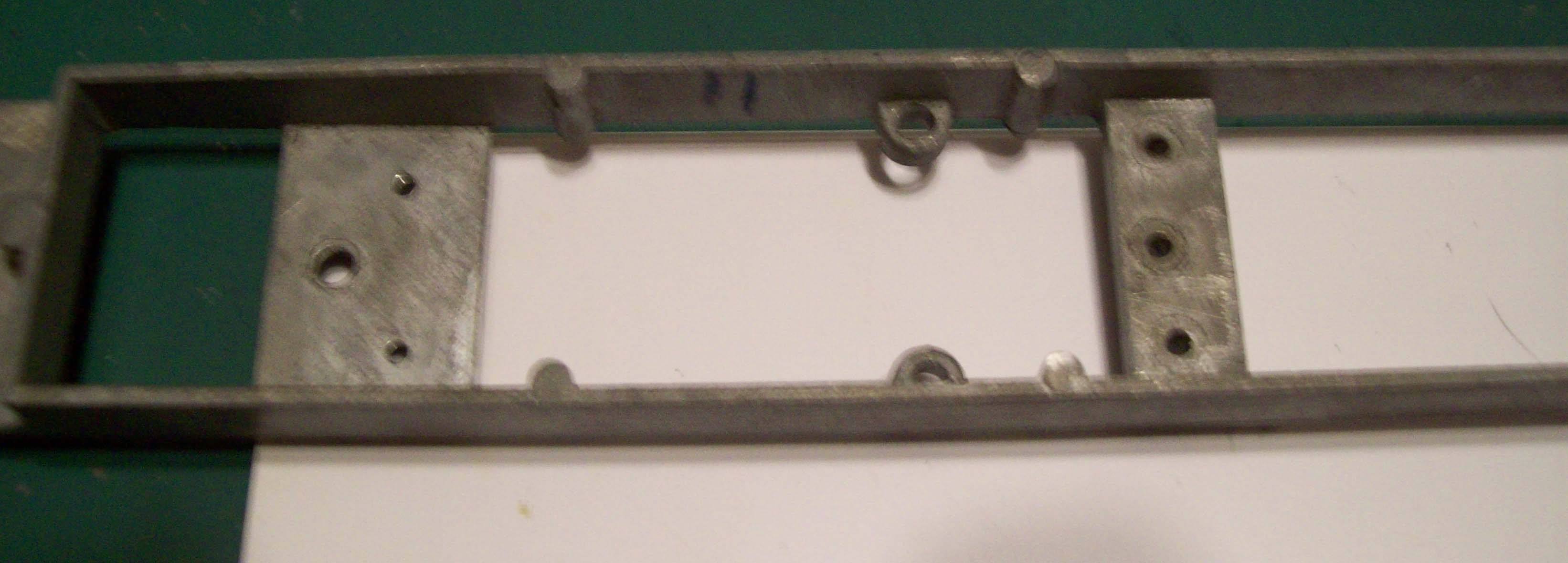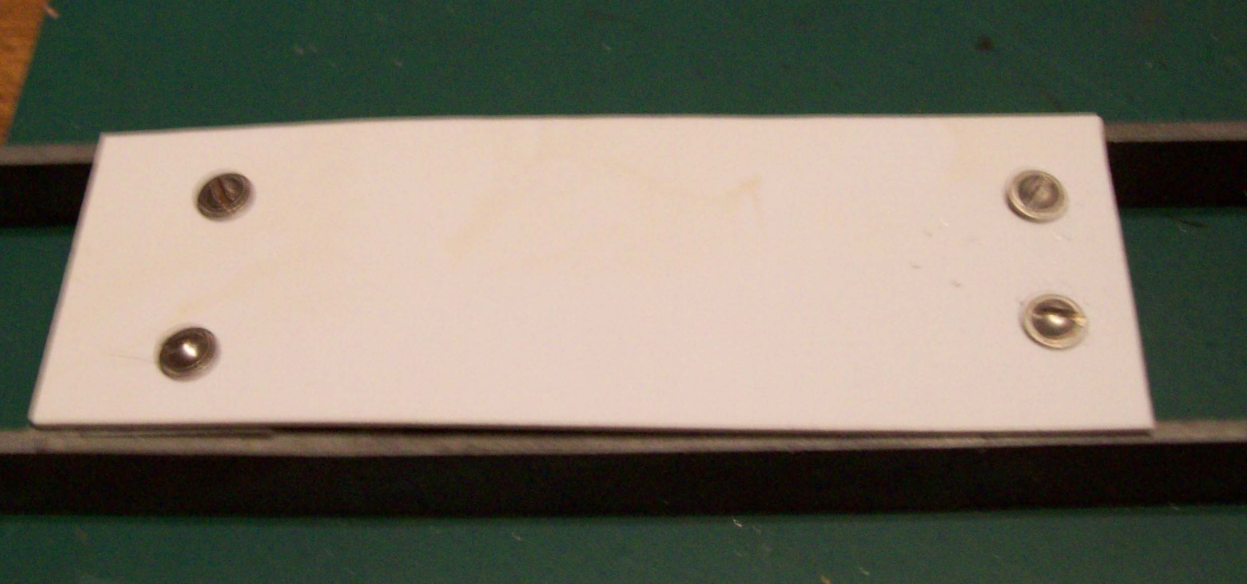 Now place the large piece of styrene against the bottom of the frame and drill the holes for attaching it to the frame. I used a 2-56 Clearance Drill bit to make these holes as the screw needs to be able to go threw them without catching. Then I drilled then 2-56 Tap holes in the frame. After that I used a tap to thread the holes for the screws.
