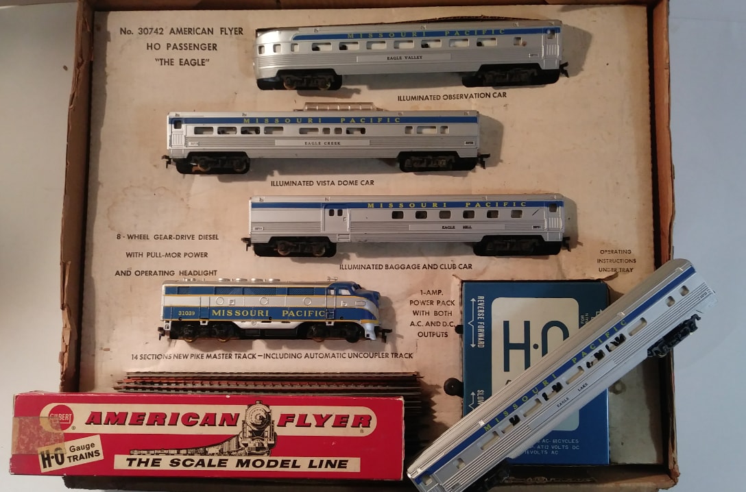 My SOTW is the 1963 Gilbert 30742 "The Eagle" Missouri Pacific passenger set in its original set box along with the extremely hard to find separate sale only Eagle Lake coach in its original box. This is one of the most sought after passenger sets offered by Gilbert.