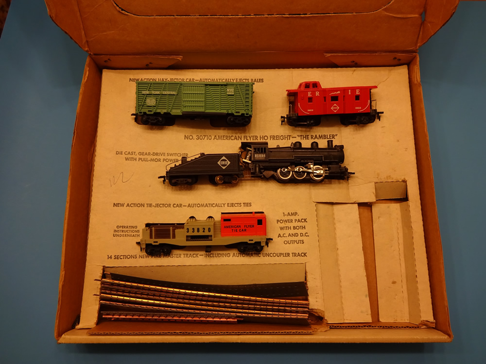 I will clue you in....it's the original box, but the set was cobbled together. There is a five unit train set, with transformer and track. The track however is Atlas.