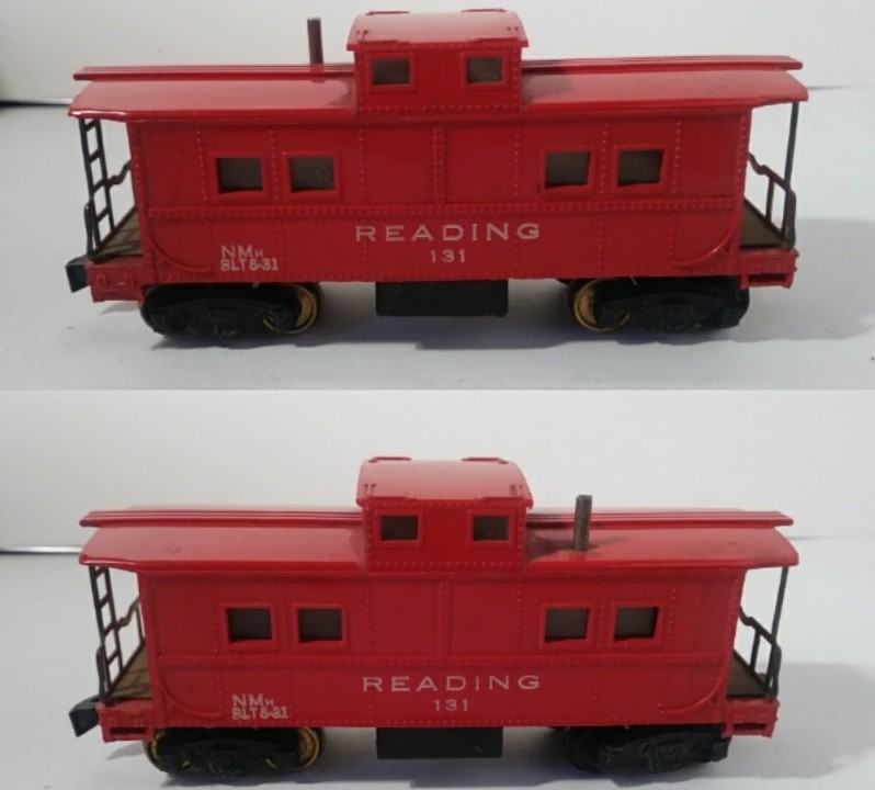 6)early postwar 131 Reading lighted caboose. One coupler spring is broken. $18