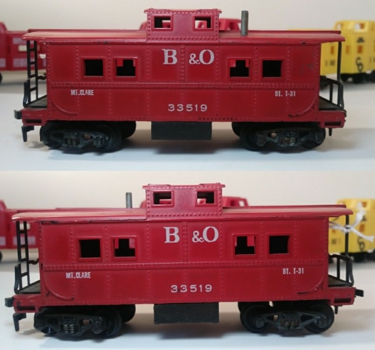 11)33519 B&O caboose. Sprung trucks, one broken coupler $12