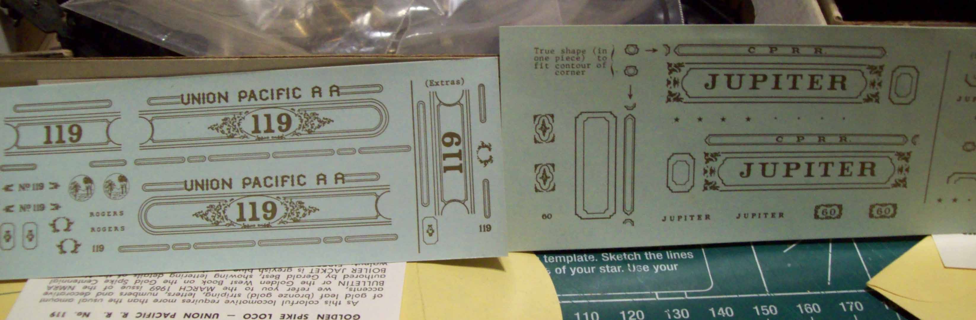My accessory of this week is my new decals for kit-bashing the Golden Spike locomotives. I'll be using a Rivarossi 4-4-0 Genoa and Reno for these locos.