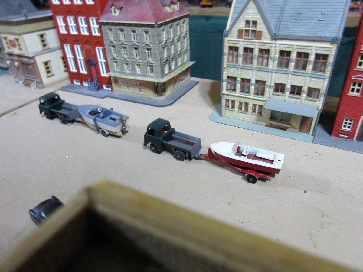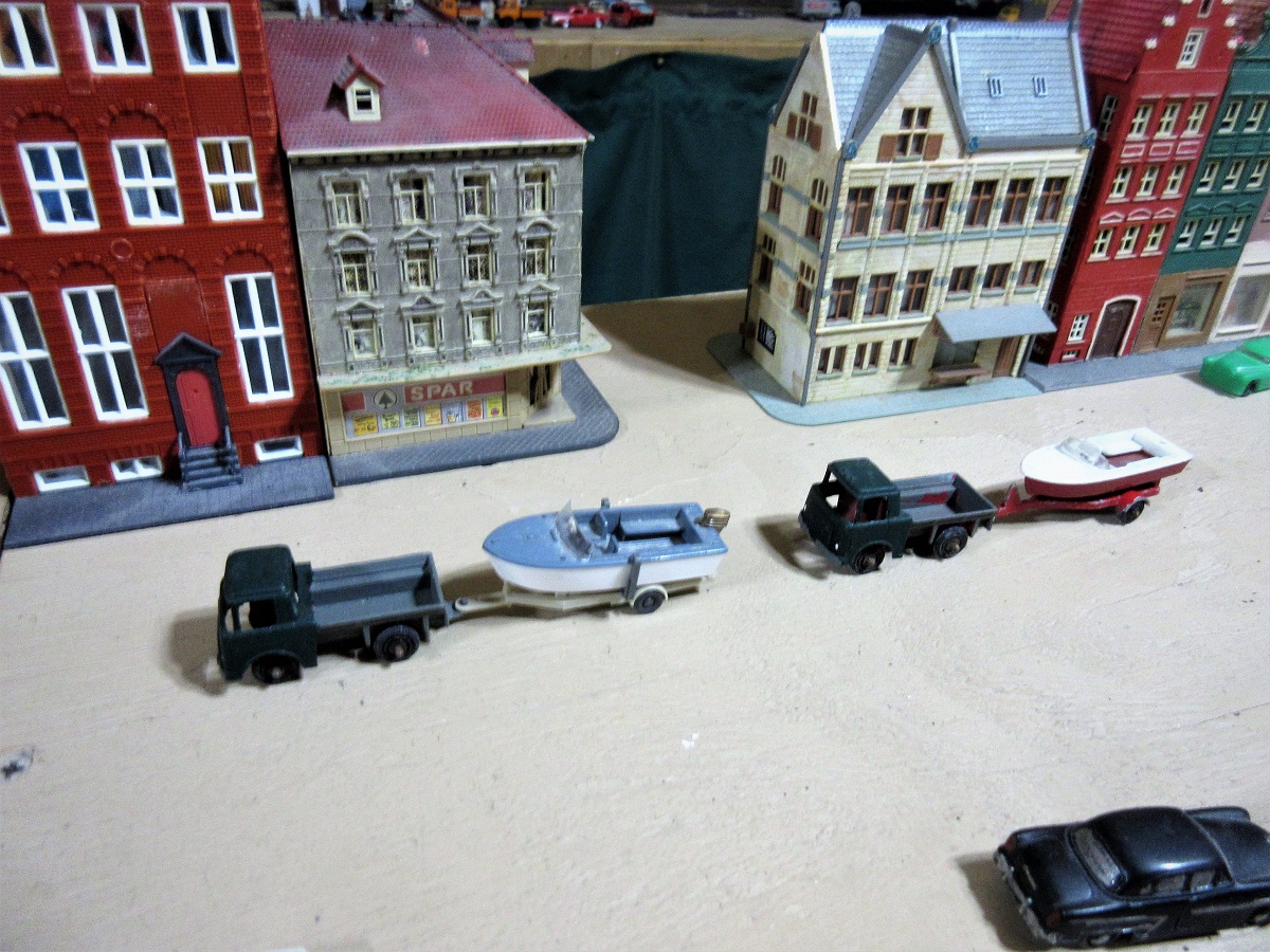 Opps here is my AOTW. A pair of old Jeep pickups towing some speed boats. The jeeps are tootsie toys. frank