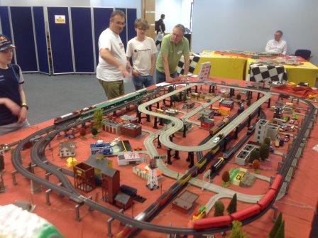 As this is the UK most of the Slot cars were 1/32 scale Scalextric, but there were rare vintage 1/24th Scale Scalextric running too, Wrenn Formula 152, VIP, 1/43 scale, also Carrera and several HO layouts, one running T jets and three others running the unique British Minic Motorways system.