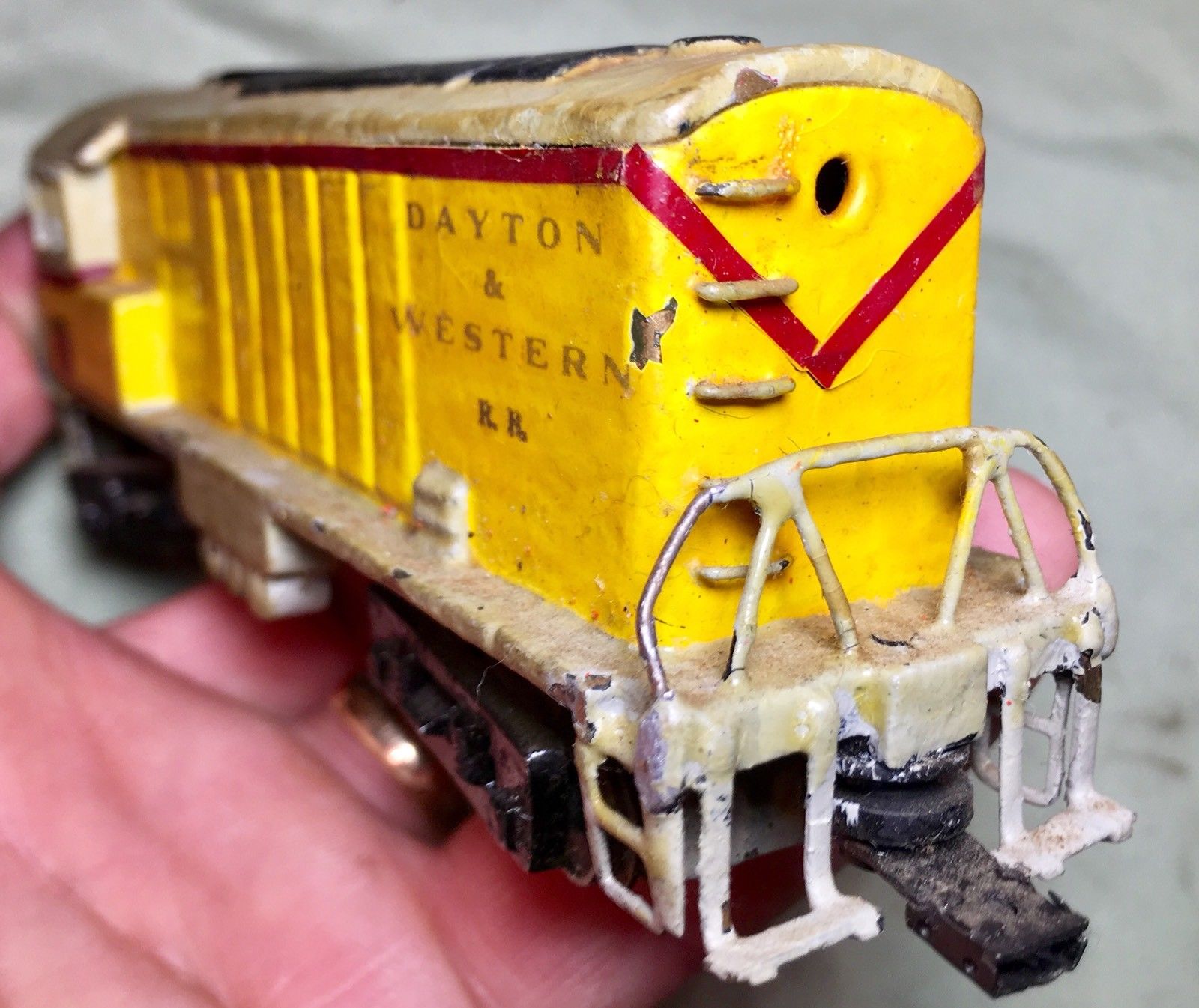 Not brass, or heavy metal, but still nice. From the RIP track. Rivarossi Mikado . This had a nosedive onto something, in it's past Reattached the pilot, cleaned and lubed. Back to the LHS today.