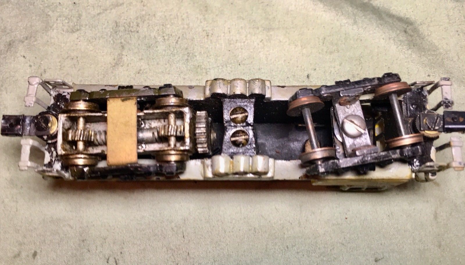 The engine as I got it. bad painted in grey and stuck. looks different now. Erich