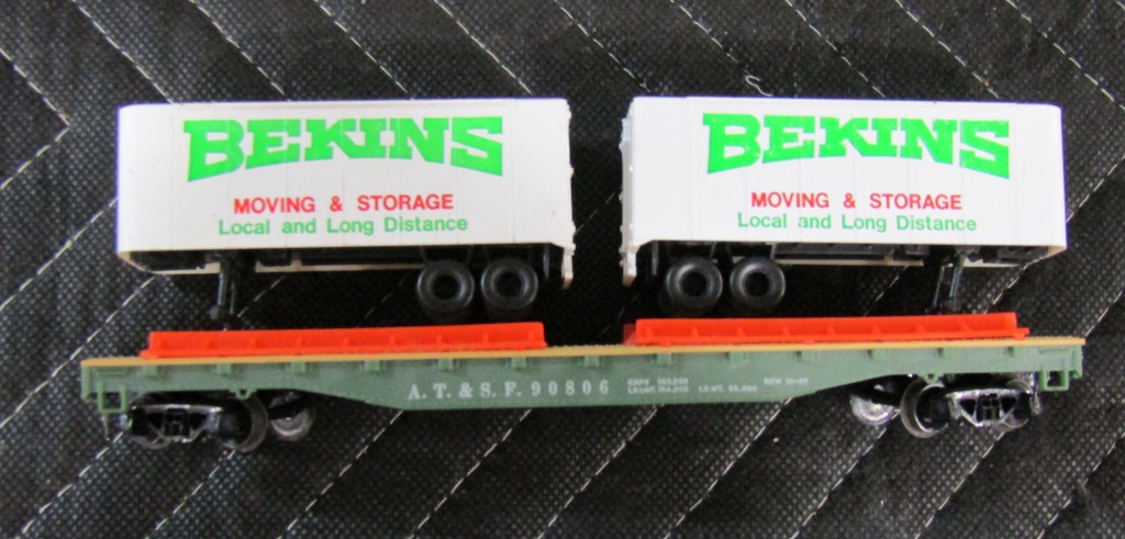 Through recent auction wins, I have finally obtained 1 Bekins Piggyback flat car! The trailers have a bit of wear, but.....to be expected not only due to age, but also after moving furniture and other items miles- by HO-scale rail.