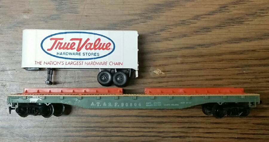 Another item my train-shop co-worker found for me, a hard to find True Value trailer. Only one of the pair, but still , my first one of this type.