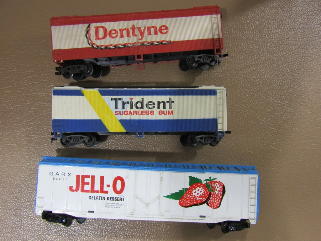 A "set" of 3 billboard box cars - Dentyne, Trident Gum, and Tyco Jell-O = all of which I just received in the mail today, thanks to a great transaction with chevelle454. Thanks man!