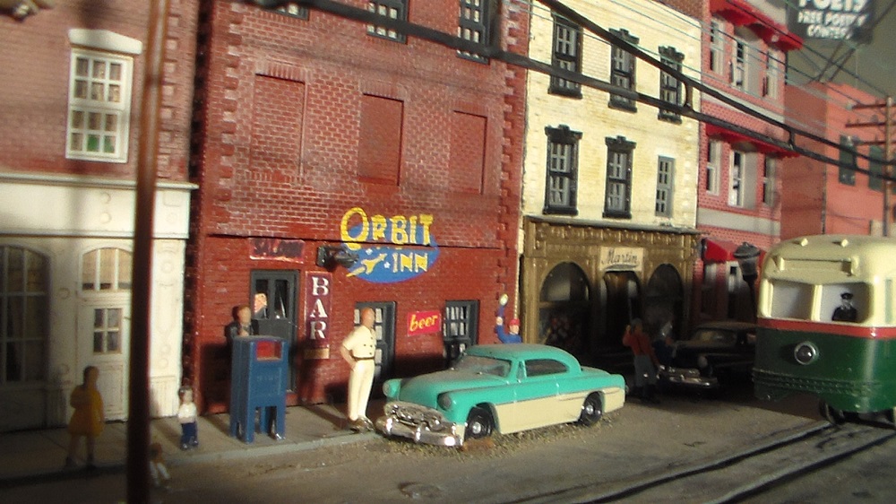 A Bachmann PCC breezes down Piedras (means "rock") Street in downtown Smeltertown.