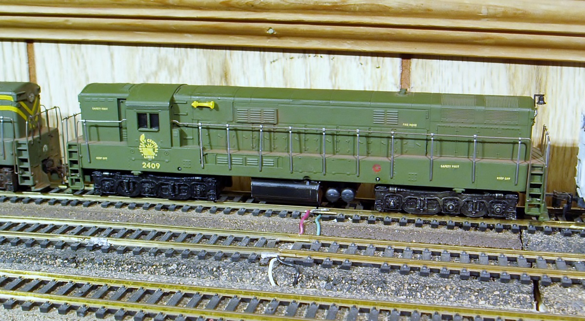 This is the corpse of an Aristocraft/New One 4-4-2 Atlantic. Factory painted for the B&O, it is actually of C&NW prototype and was a clone of a contemporary Tenshodo brass model, but in zamac.