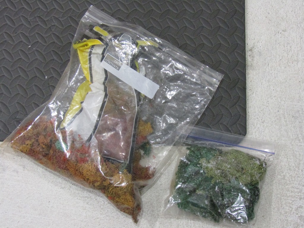Lastly, 2 opened bags of mixed scenics (Some fall colored, some green.)