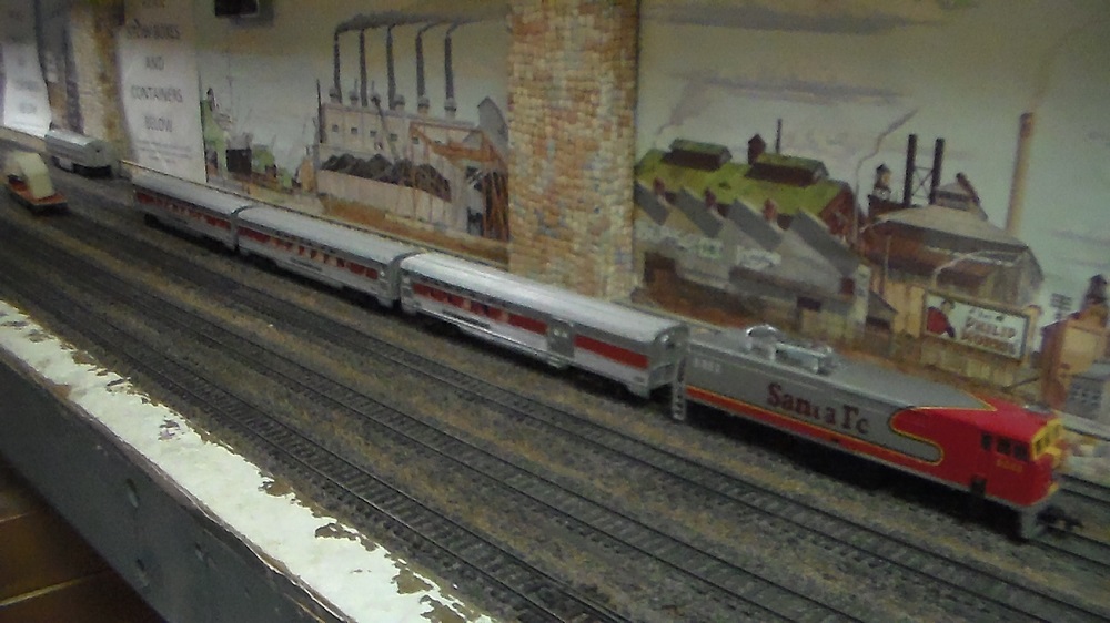 Finally, I track down Joel and trade him a very nice Atlas custom painted Soo Line and matching Tyco caboose for his three ATSF coaches to create this consist. It ran so beautifully for hours last night. A Bachmann ATSF E60 pulling a short intercity. Smooth as glass.