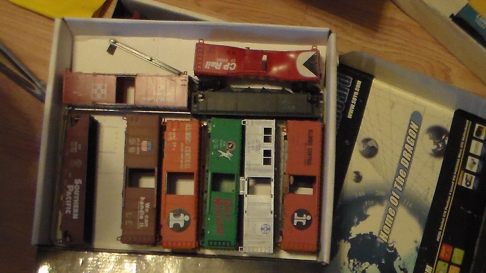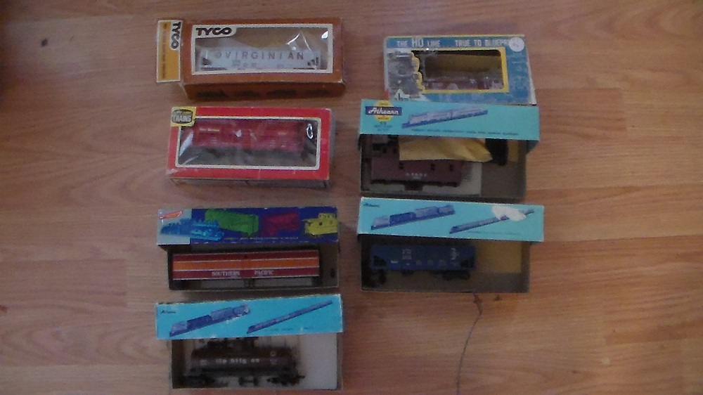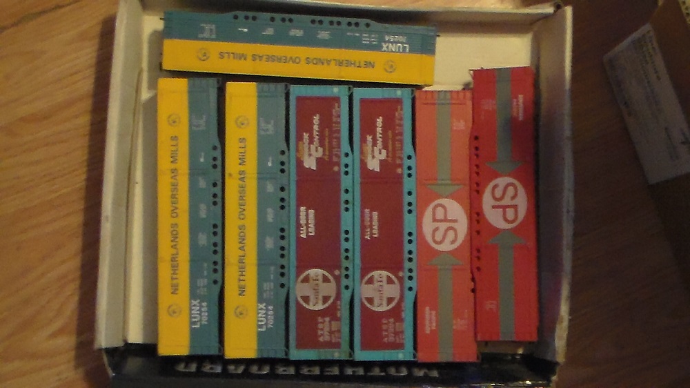 I'd really like to unload that box of AHM box cars. I really, really doubt they will sell at any price, but would make an impressive string for the right collector. They all need brake wheels and trucks, though. They are AHM.