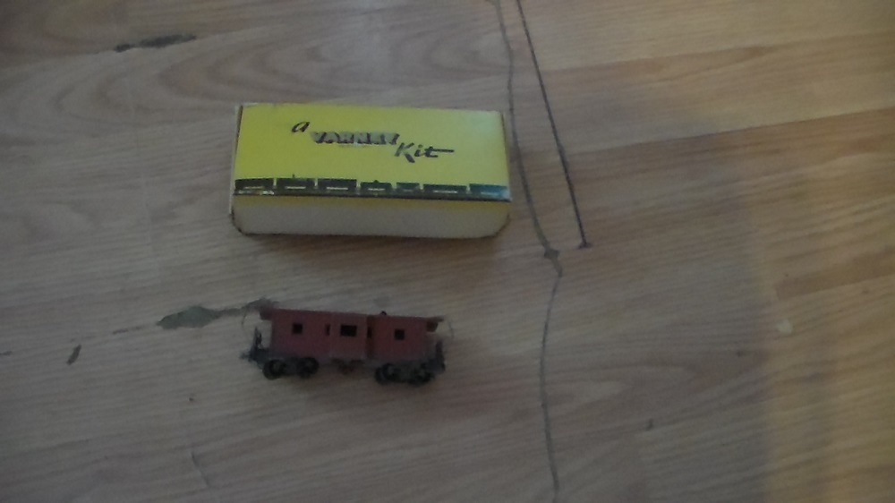 What's in the Varney box, oops, is a built up Varney caboose. It appears to have all its bits, but the ladders were poorly installed, but could be refitted by right set of hands. There is one zinc dummy coupler in the box, which I assume is original.