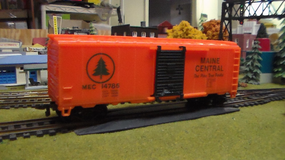 I'm getting a kick out of these "tropical fish" cars. My latest find was in a huge pile of stuff from Henry, this on being a Maine Central 40 footer, missing a door. That was an easy fix. I thought when I found a B&M orange gondola, that such was a fantasy league piece, and then someone posted a proto photo of the same unit in florescent orange as a MOW car.