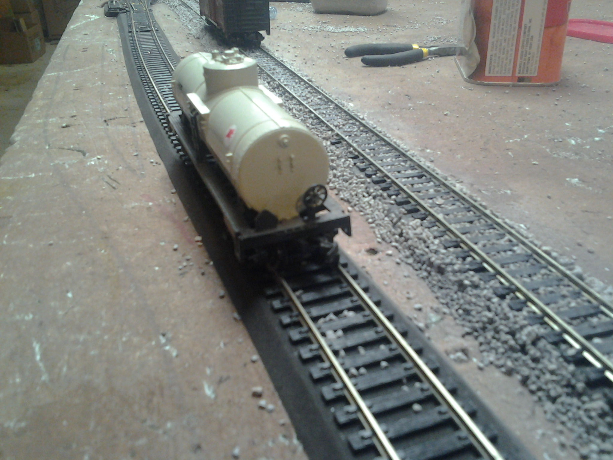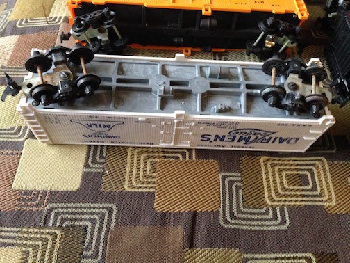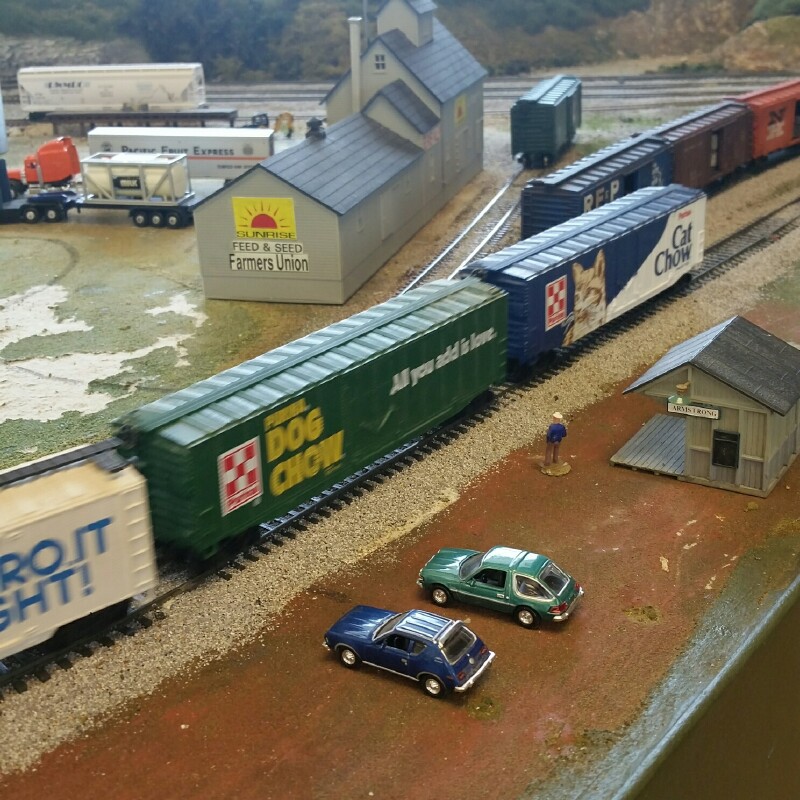 Nice mistake there. Totally Dairy in all white. My contribution this week is going to the dogs ( and cats ), two Purinca boxcars of feed for the furries. Part of the $2 apiece HO stuff I got at a train show a few months ago from a Lionel guy ditching the HO.