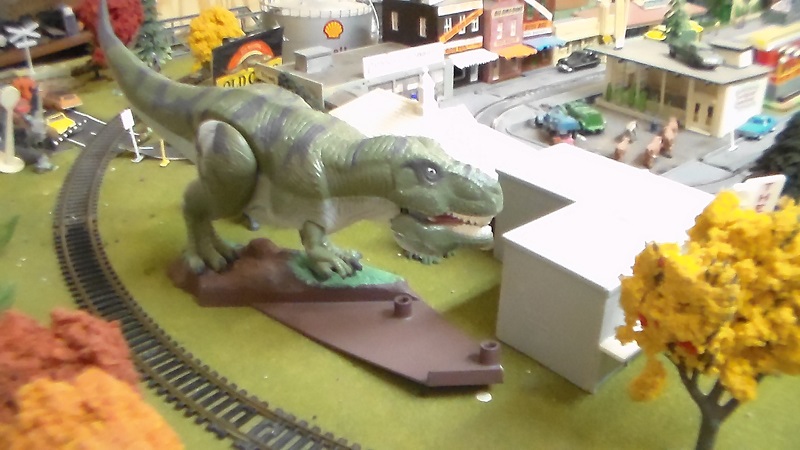 A Tyco animated T Rex, from the Tyco Jurassic Park set that came out in 1993. This one works quite well, and future plans to build up and over the base are in production. Seen below in this video (not mine):