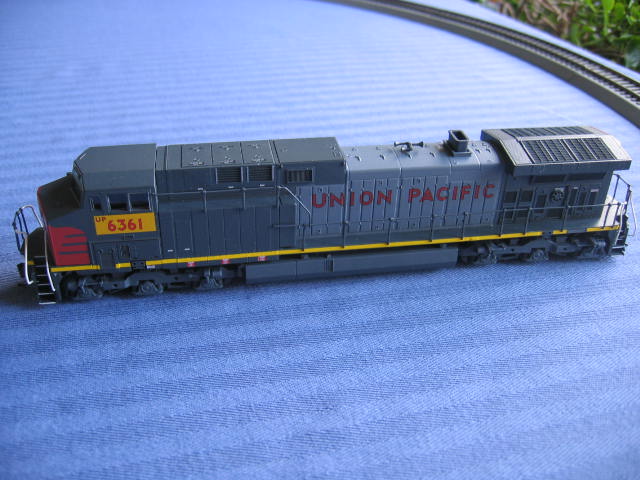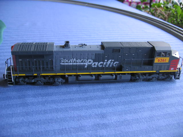 This was an Athearn SP AC4400 I picked up in Feb of 2018 for $20. It was a little banged up. I painted it as SP/UP #6361. The history on the real engine is.... There was a fire on this engine which burned up the left side after the SP/UP merger. So, UP painted and decaled it as UP on the left side leaving the SP on the right side.