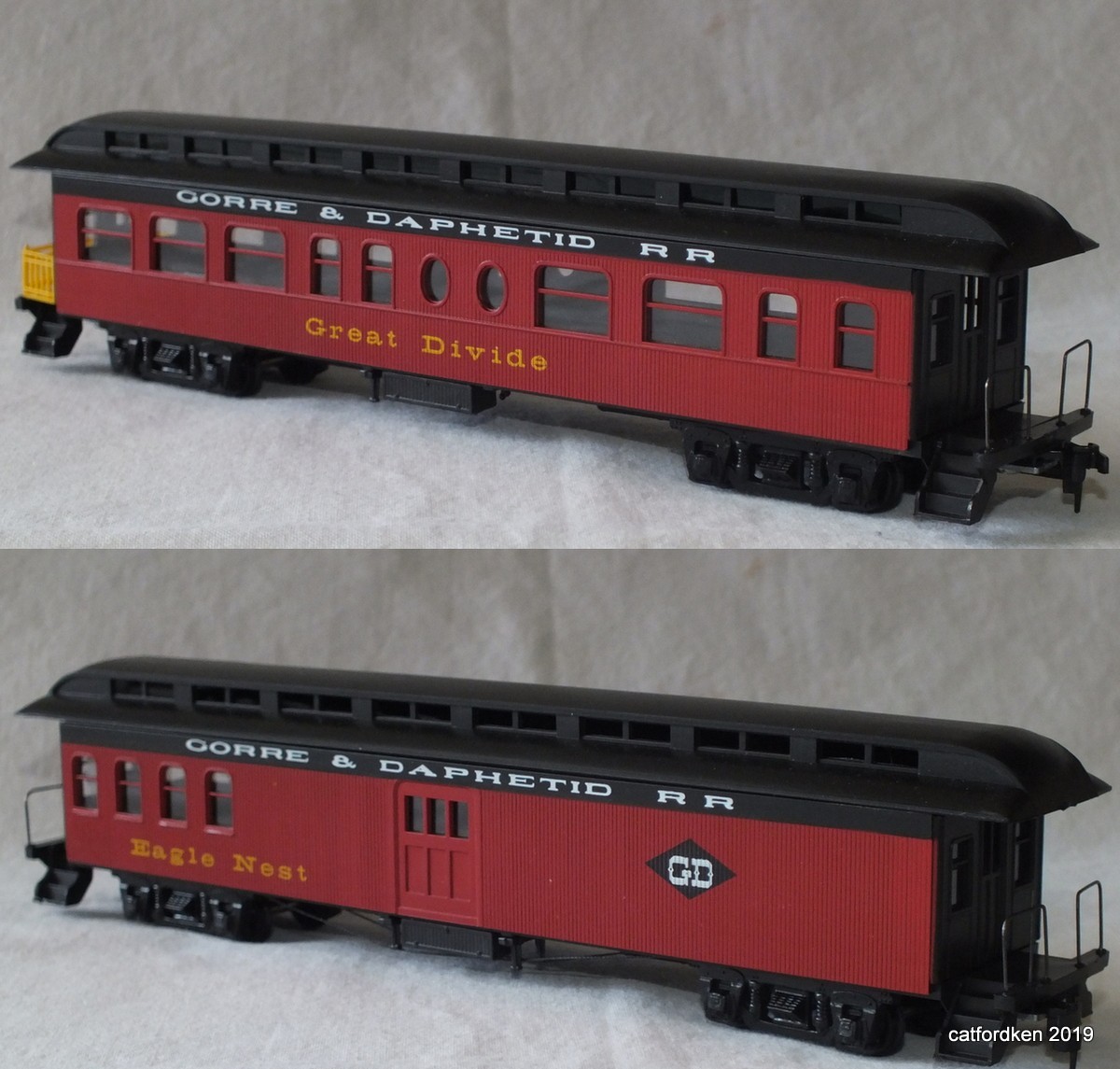 For this week the Central Pacific passenger set. It is mixed with a TYCO General a good friend paint and lettered. He liked a General I had done and we traded. The combine and coach are old AHM Pocher cars from the early 1960's. frank