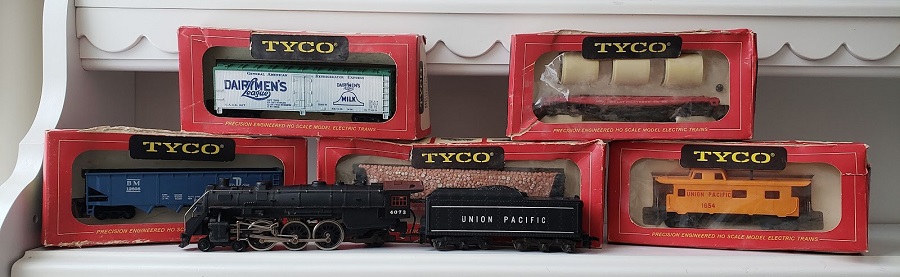 Here's a red box 4-6-2 set, I've got the log car somewhere.