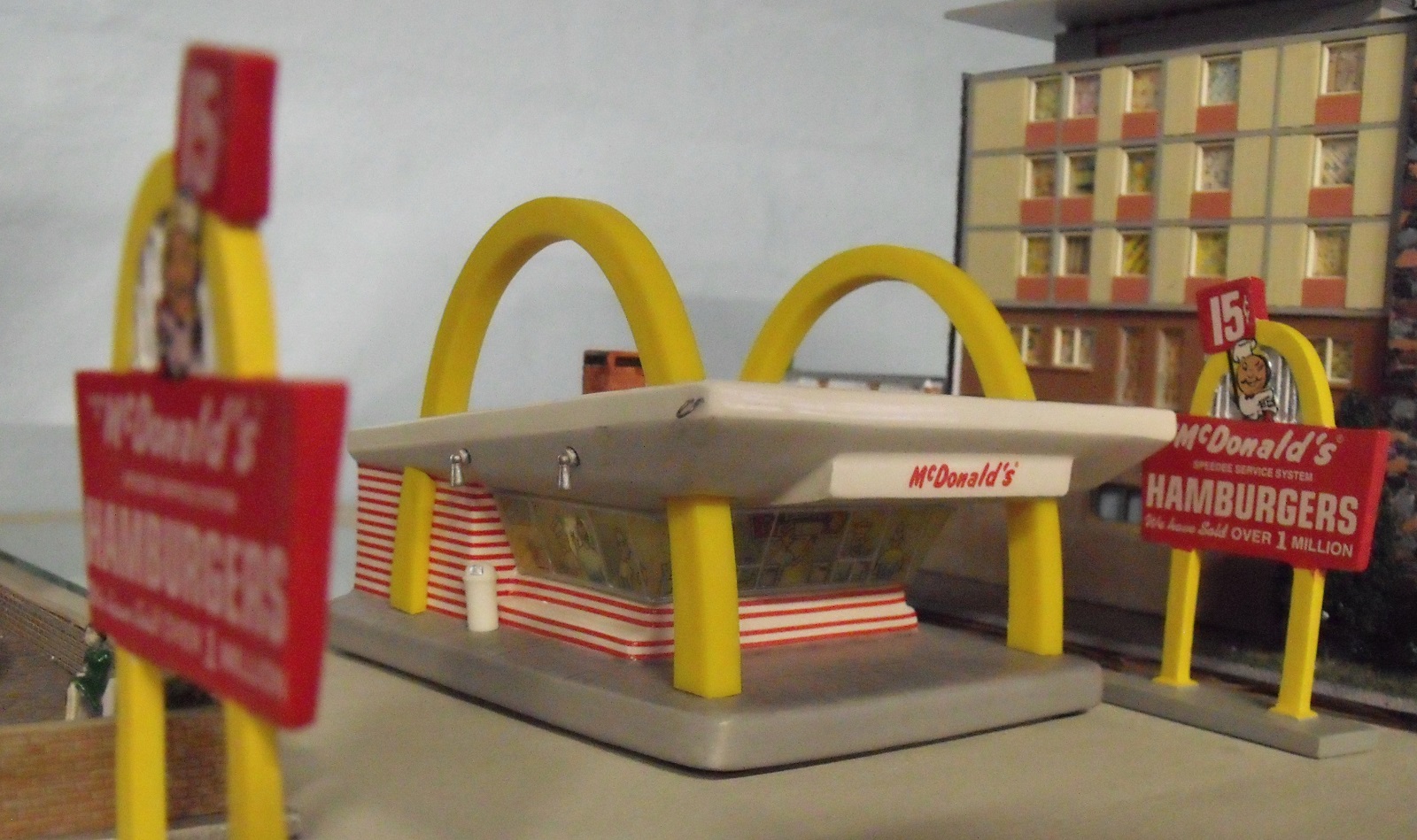 I came home from work last year one day and my wife surprised me with this ceramic McDonald's she picked up at a garage sale for $5. Not as detailed as the kit but the size and price were right. Master Of Plasticville