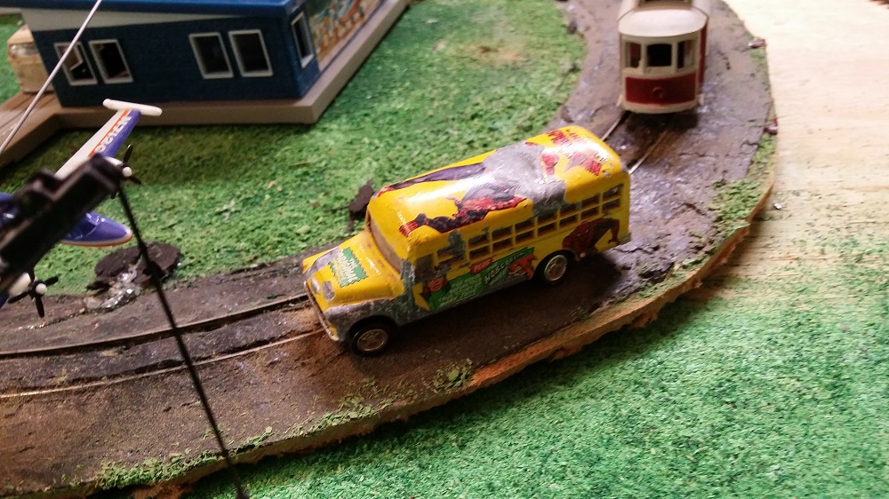 Then the Busss added in this great little Marvel Comic Book school bus. Like a lot of the guys here, I grew up with comic books, and this piece has been loved and used, and that makes it super awesome that I can now preserve this piece on Armadilloville.