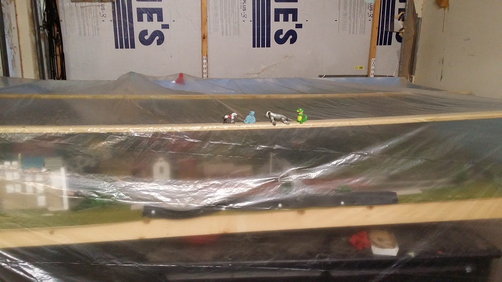 On my day off, Thursday, I finally got off my keister and built a dust drape scaffold for Henley, and can't wait to run trains on it again.