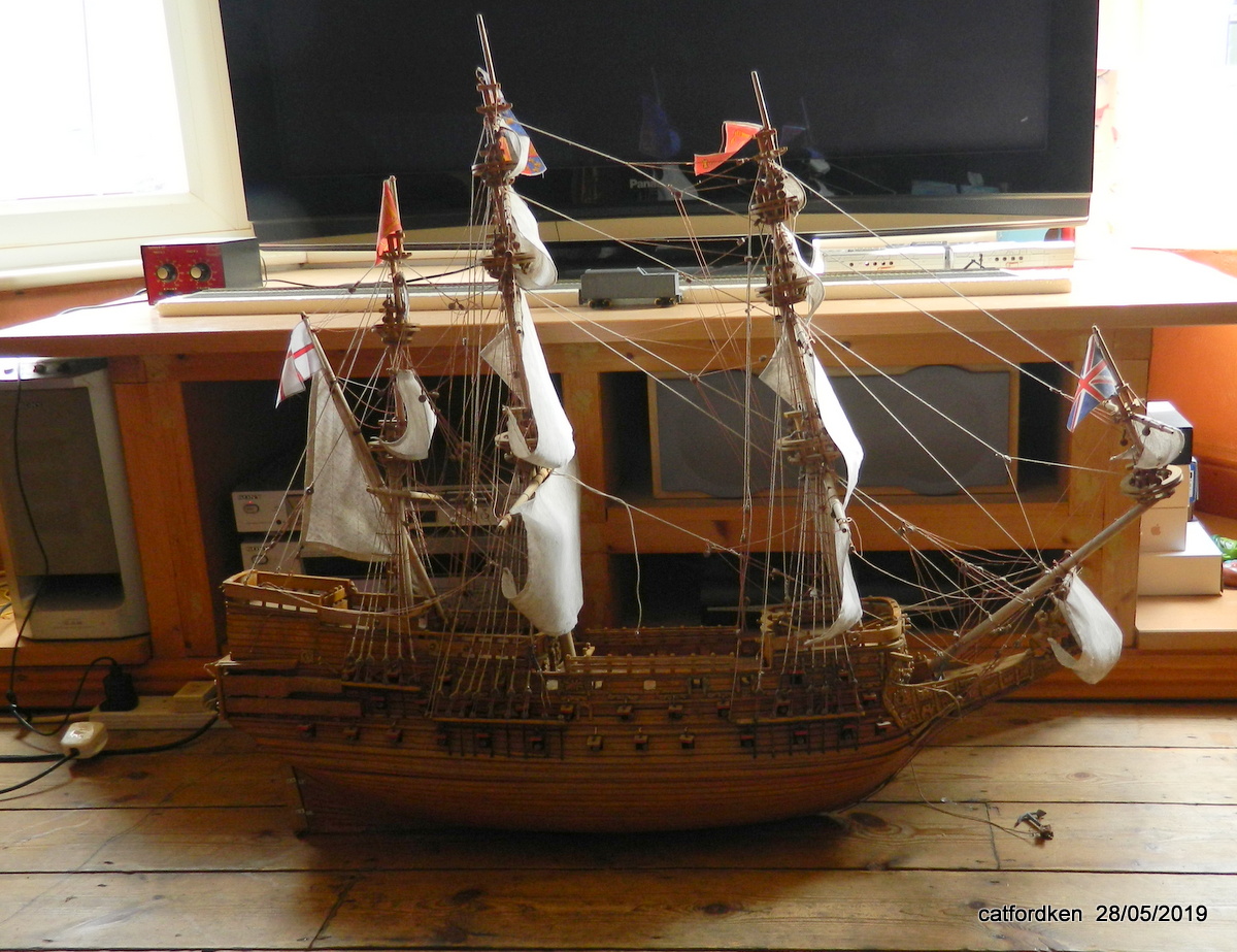 not been here much last week,due to finding this 1/78th scale sovereign of the seas british battleship,its big as can be seen by size of it in front of a 50 tv,and made by mantua of italy?