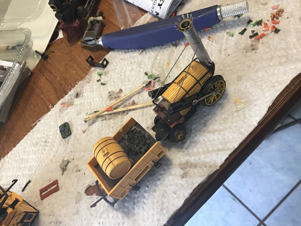The locomotive is now a dummy that will get pushed. The axle is a little tight, will try to lube it up, if that doesn't work, will open it up and widen the axle slot.