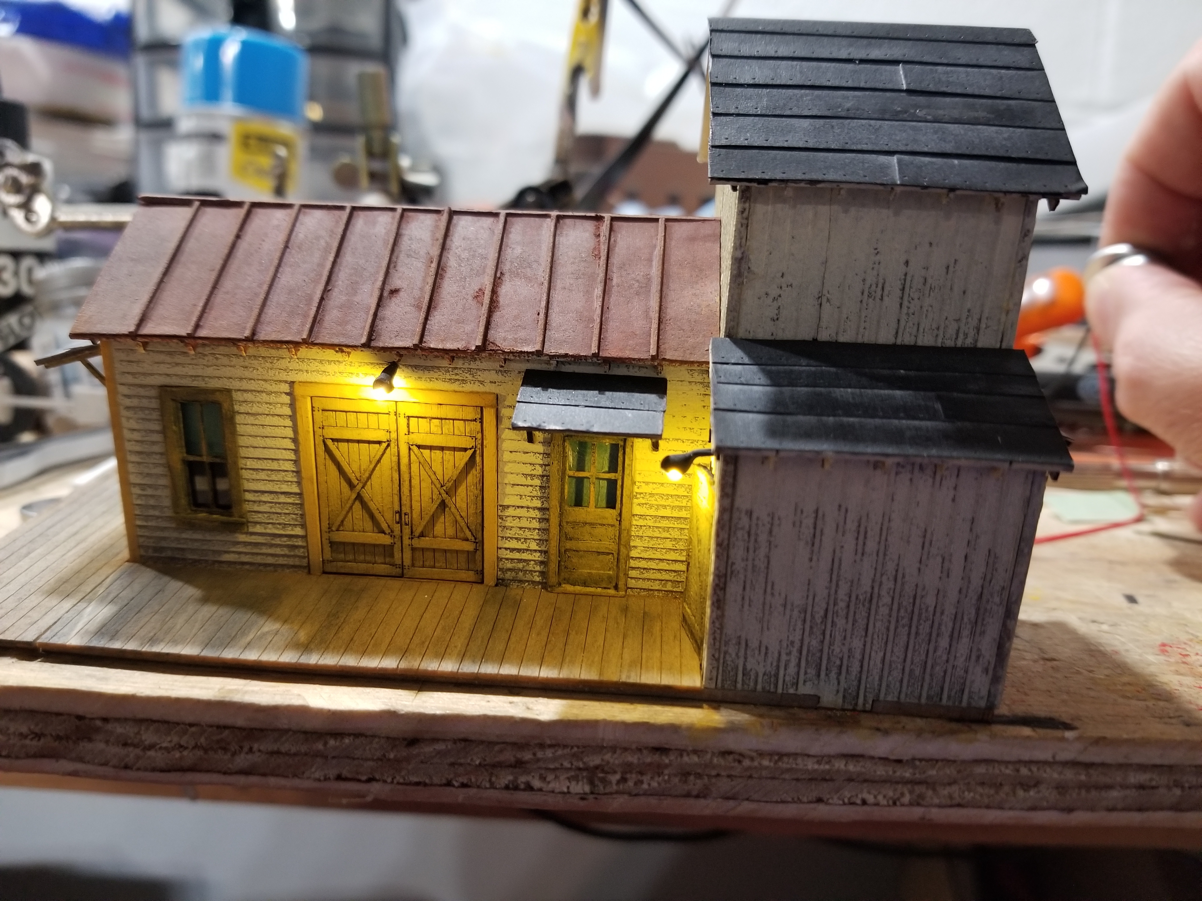 I never had a set that come with those cardstock TYCO buildings Chops thanks for sharing. The building I've been working on is a Walthers laser kit found in the hobby shops half off bin from someone opening it. Lucily all the parts were there. The lights I added are from a Doller Tree light set. Bill