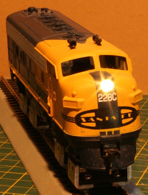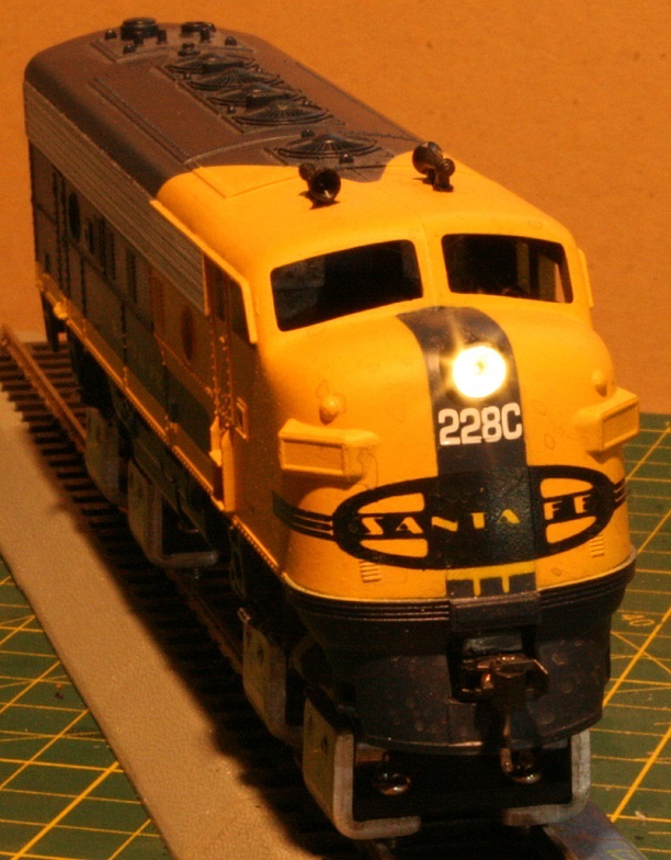 This Santa Fe F7 is equipped with the LED Headlight also lit by a half volt. What a huge difference!!!
