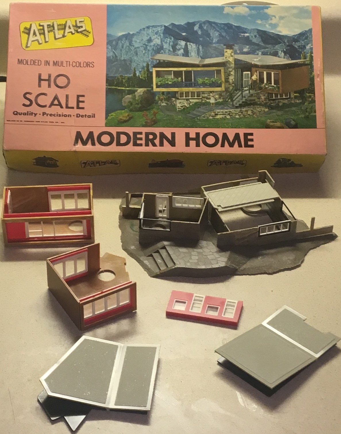 Hi, Bamos… I just learned of this kit about a year ago and had to have one. I actually have two, one still in box unbuilt. But I have promised it to a member here on the forum. I just like the home as it fits my 70s era layout. Here is a present photo taken last night, the upper levels and steps are no glued yet and still minus a lot of detail.