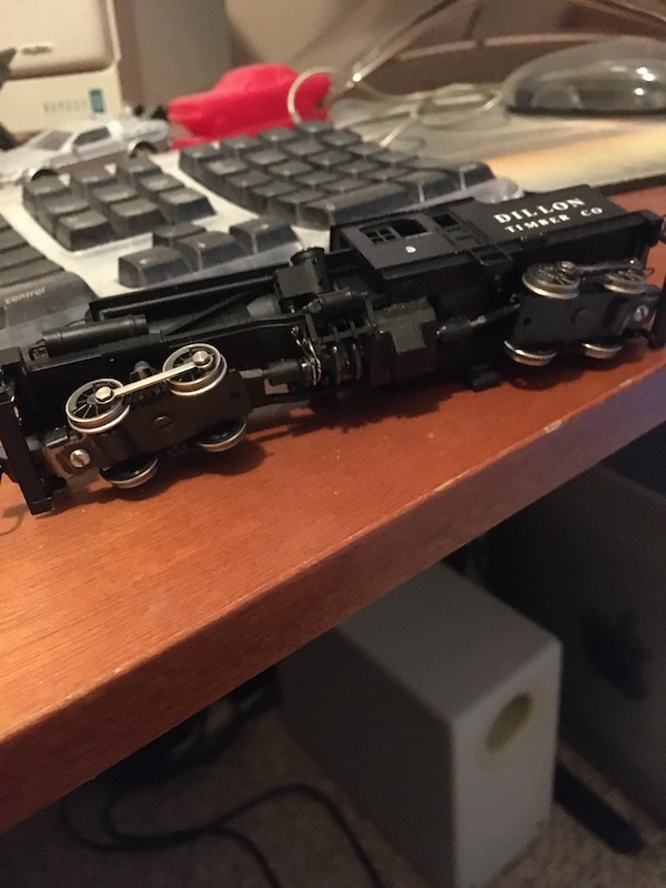 My LOTW is a custom painted Rivarossi Heisler from the 1970's or 1980's. The detail on this thing is incredible for an engine from this time period, and it runs quite nicely. The most impressive thing about the model, though, is the mechanism. It has an extremely complex mechanism which seems to at the very least help move the locomotive. In the pictures below, you'll see it. I wish I could describe it better, but I'm not exactly well read on my terminology for logging locomotives like that. I got this guy at a train show a few years ago for only $60. All I had to do to get it running fairly nicely was cleaning the wheels a bit and a little bit of lubrication. This thing is really sweet to watch as it runs.