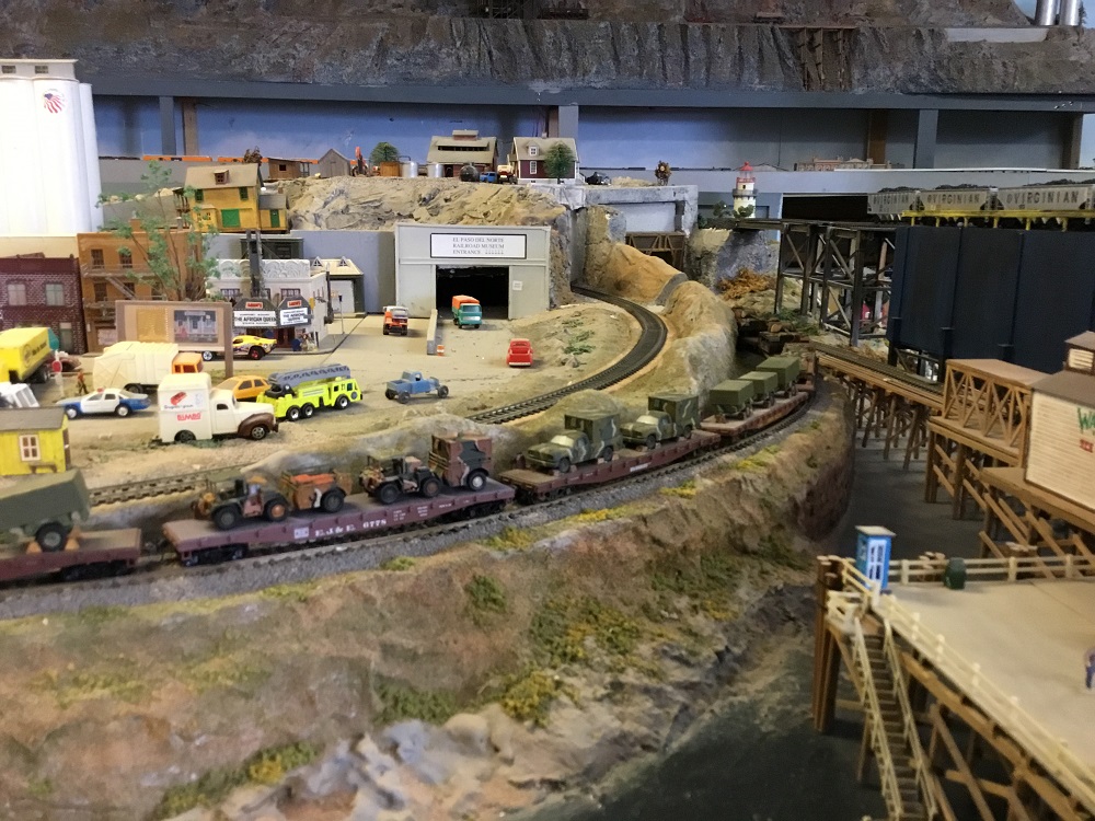 Below is a military set, custom built by Gordon Pugh, photographed past November at the El Paso Model Train Club. Gordon, a Vietnam Vet, modeled what he was around at that time.