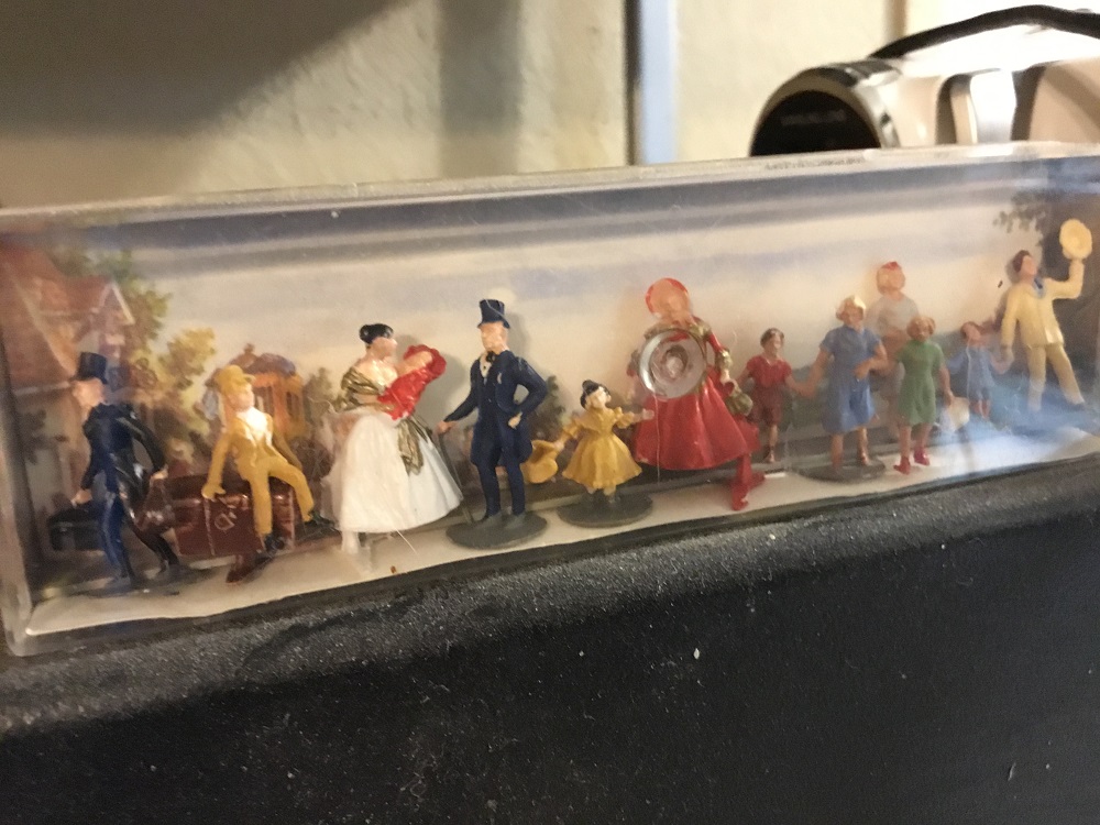 Got these for Christmas from my eldest daughter. The folks on the left side are definitely 19th century, and the right definitely European 1950's. Likely the European folks can be moved in and out for props when I want to reflect something 1960's Britain, and use the 19th century people for Britain turn of the century - 1927.