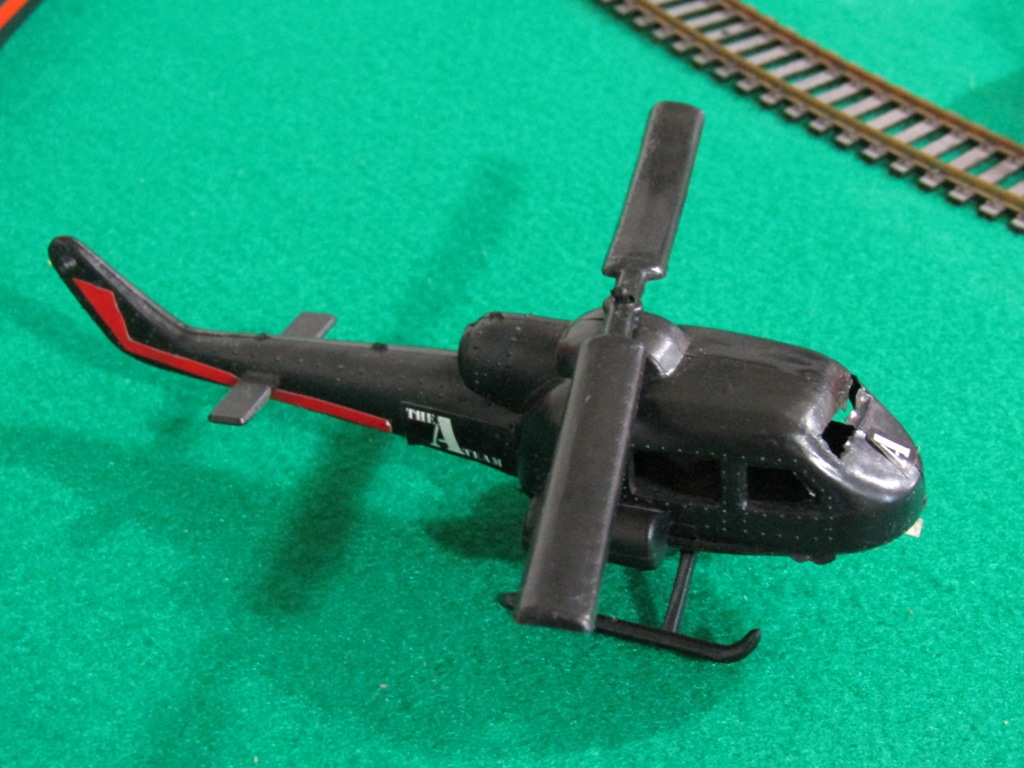 quote:I FINALLY GOT IT! THE TYCO A-TEAM HELICOPTER, with original stickers!!!!!!! Unfortunately it is missing the rear blades. :(