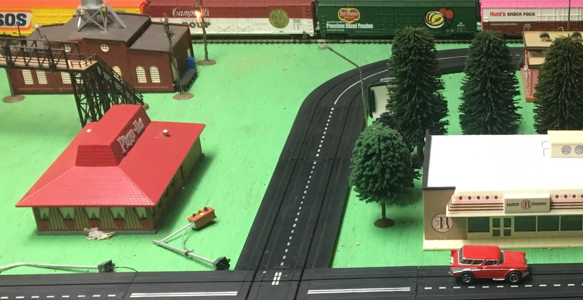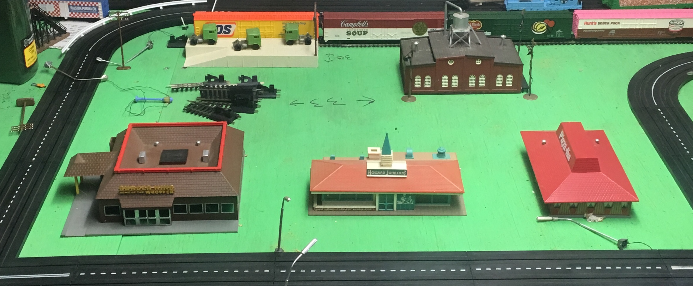 This is my Tyco Pizza Hut that I built several years ago. It's on my layout in and section that has not been detailed yet... Pic 2 and 3 are a few years old.