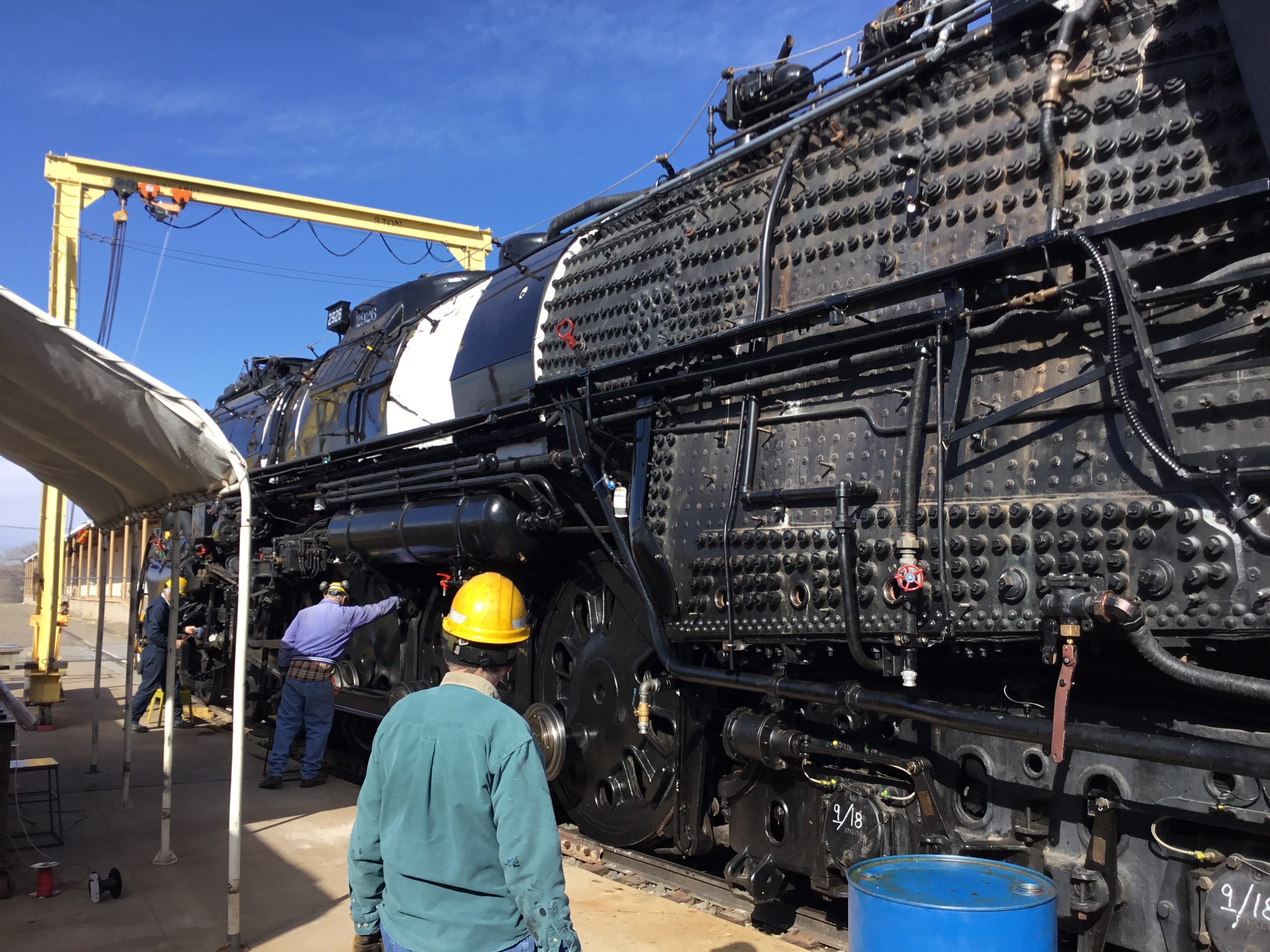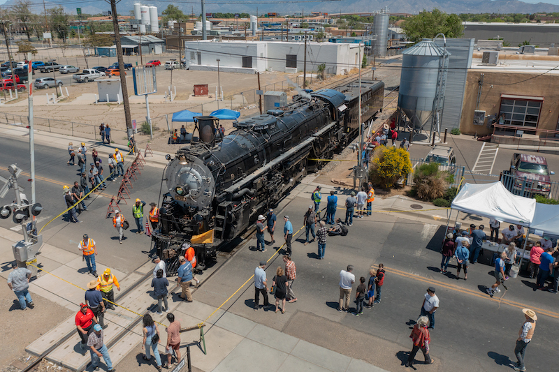 ALBUQUERQUE, N.M. – Santa Fe 4-8-4 No. 2926 will make a short trip next month from its restoration site to Tractor Brewing Company in Albuquerque. The short run down approximately four blocks of industrial track will operate May 6 as a fundraiser for the New Mexico Steam Locomotive & Railroad Historical Society, which restored the locomotive to operating condition. It will be the first time the engine has moved any distance under its own power.